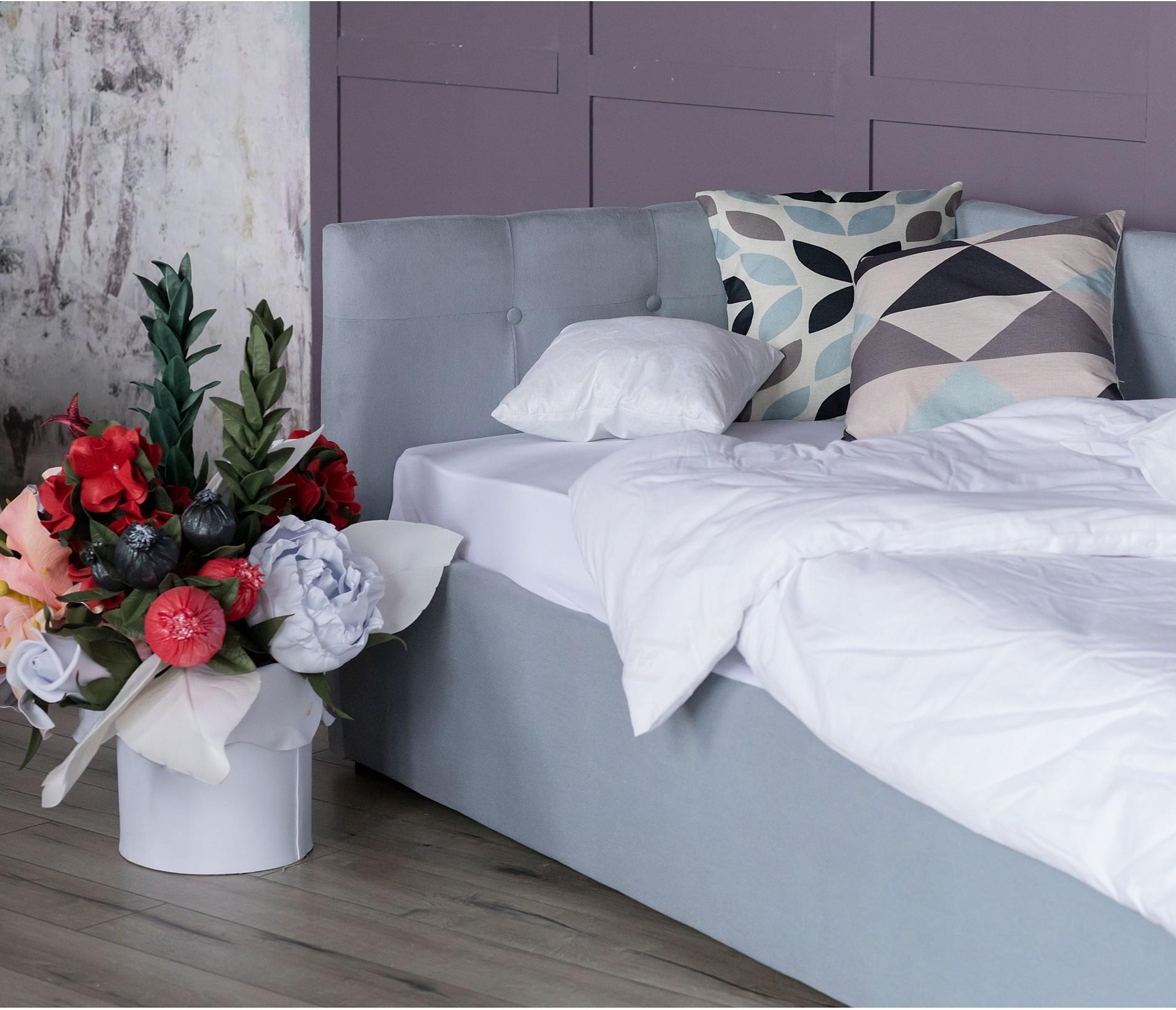 Кровать с подъемным механизмом создает дополнительное место для хранения постельного белья и вещей не первой необходимости, экономит пространство в спальне.