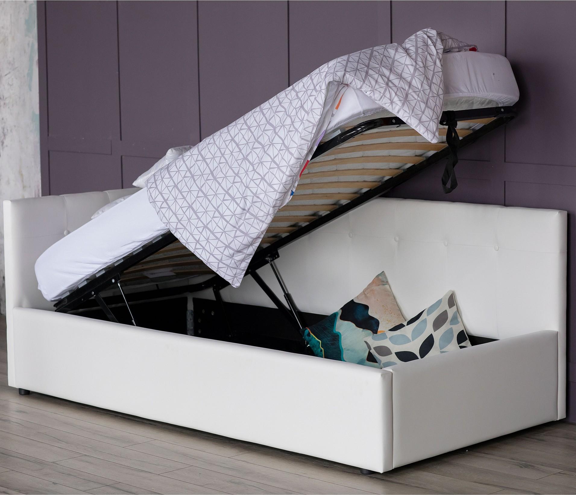 Кровать с подъемным механизмом создает дополнительное место для хранения постельного белья и вещей не первой необходимости, экономит пространство в спальне.