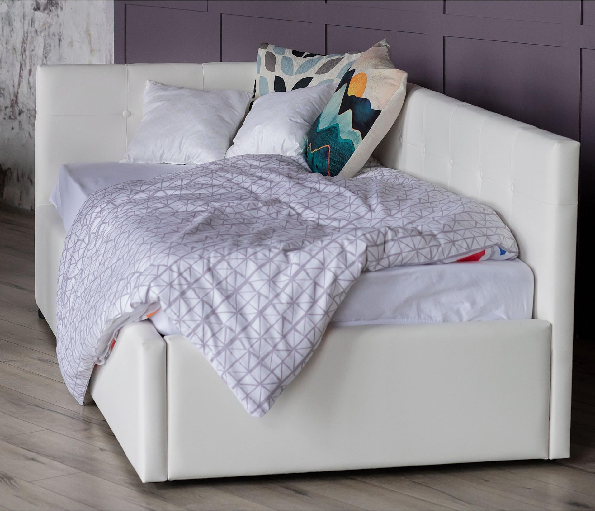 Рельефные спинки с неглубокими стяжками украшены декоративными пуговицами в тон обивки. Мягкие изголовья позволяют использовать кровать как мягкий диван для отдыха.