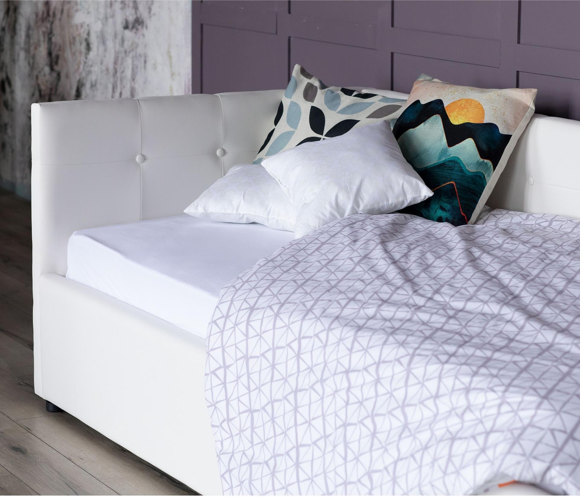 Односпальная кровать Bonna – уникальный предмет мебели, который совмещает в себе полноценную кровать и диван. Кровать с двумя мягкими спинками выполнена из модной мебельной ткани – велюр. Ткань износостойкая, легко чистится от загрязнений, практичная, эластичная, устойчивая к ультрафиолету.