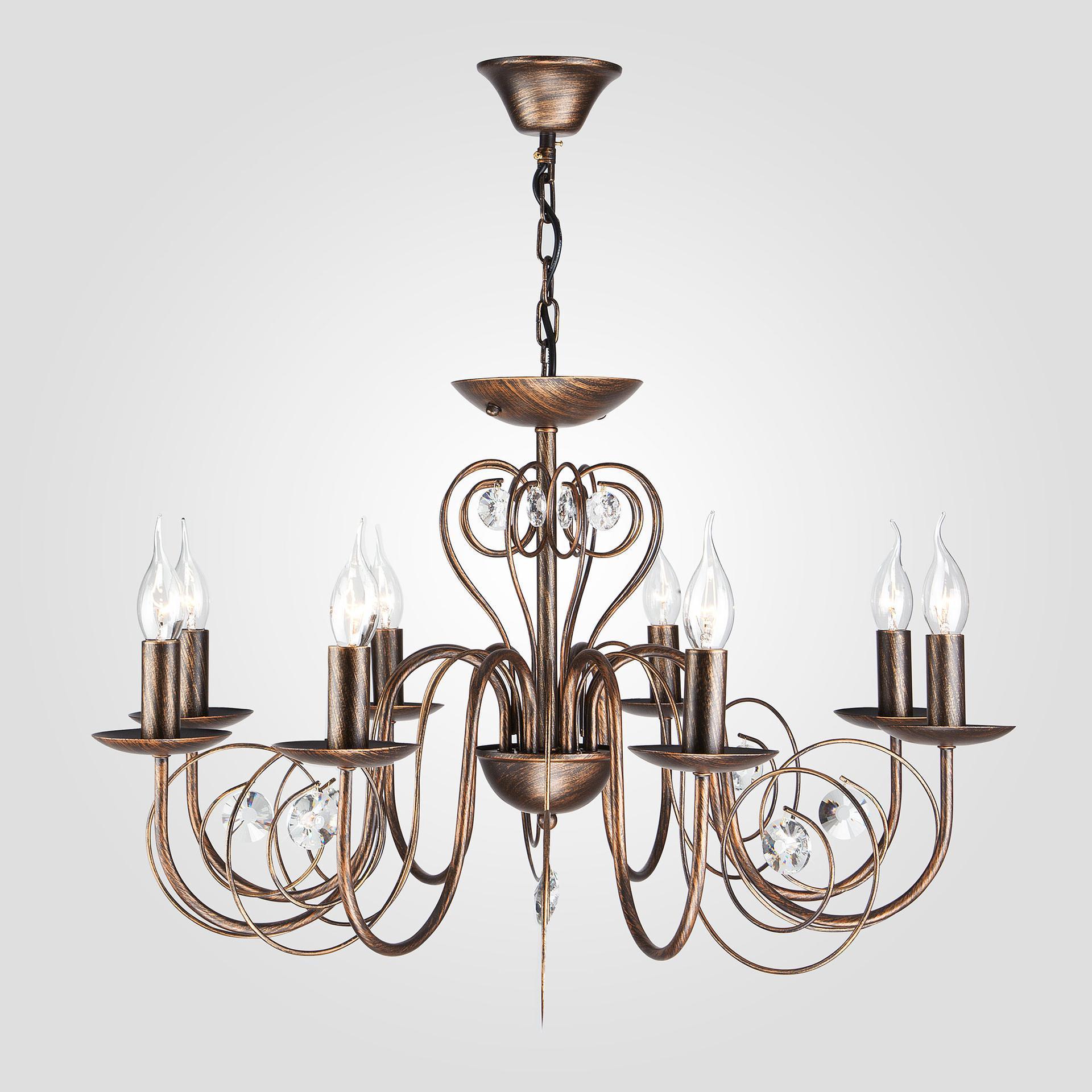 Классическая люстра с хрусталем на 8 рожков в цвете черный с золотом преобразит потолочное пространство и создаст в вашем помещении комфортное полноценное освещение на площади 38 м кв. Изящные формы и классический стиль добавят вашей гостиной утонченного аристократизма. Декоративные рожки в виде подсвечников, украшенные сменными лампами с цоколем E14 типа "свеча на ветру" переливаются на свету яркими завораживающими бликами. В производстве подвесной люстры использовали особое стекло с эффектной огранкой и высококачественный металл с надежным защитным покрытием. В нашем интернет-магазине вы можете купить подвесную хрустальную люстру по выгодной цене с доставкой по Москве и России.