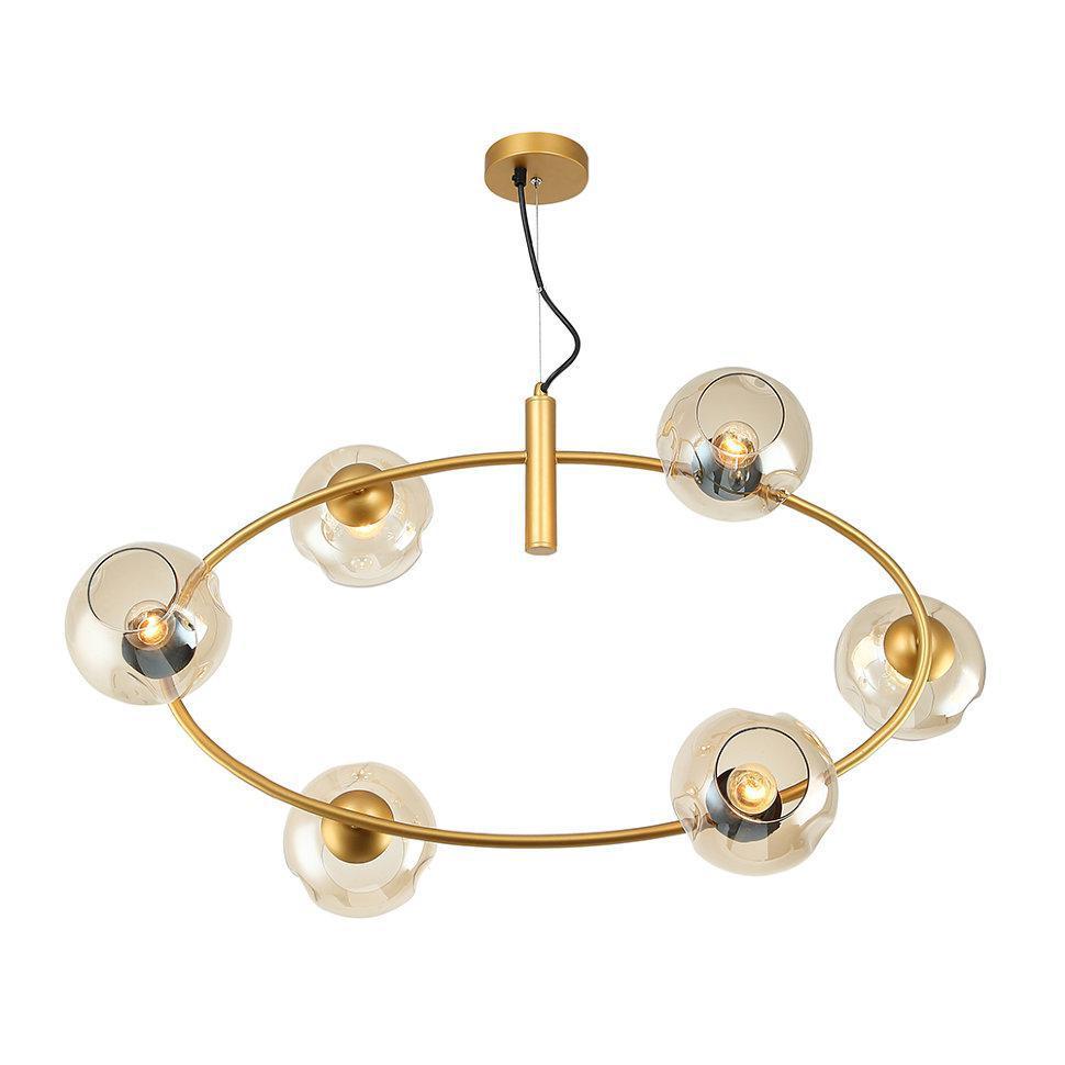 Космическим вращением экстравагантных планет вселенной вашего дома выглядит строгое металлическое кольцо, на котором основательно закрепились стеклянные, тонированные плафоны. «ФРЕРИ» - идеальный выбор ценителей LOFT.