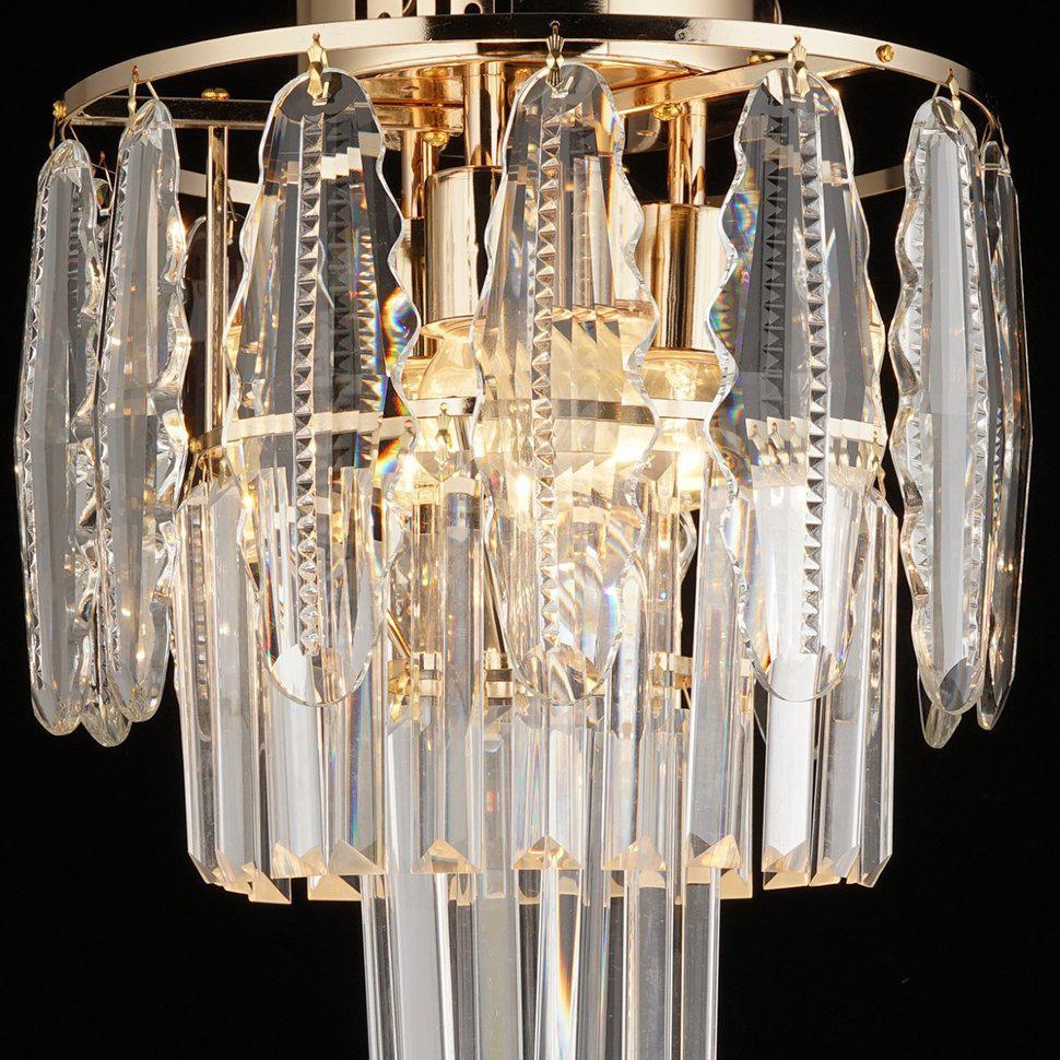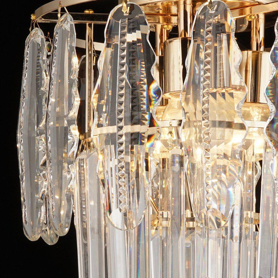 ЭЛЛЕН. Золотистое основание "ЭЛЛЕН" идеально сочетается с хрустальными элементами, свисающими с основания, как сосульки морозным зимним утром. Они пропускают через себя теплый свет ламп и собирают в себе разнообразные оттенки.