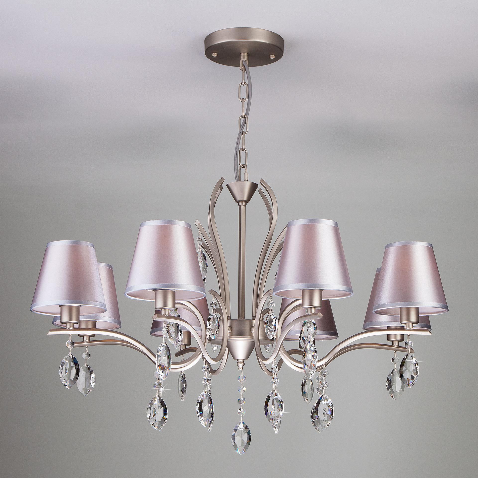 Люстра с абажурами и хрустальным декором Eurosvet 10089/8 сатин-никель/прозрачный хрусталь Strotskis
