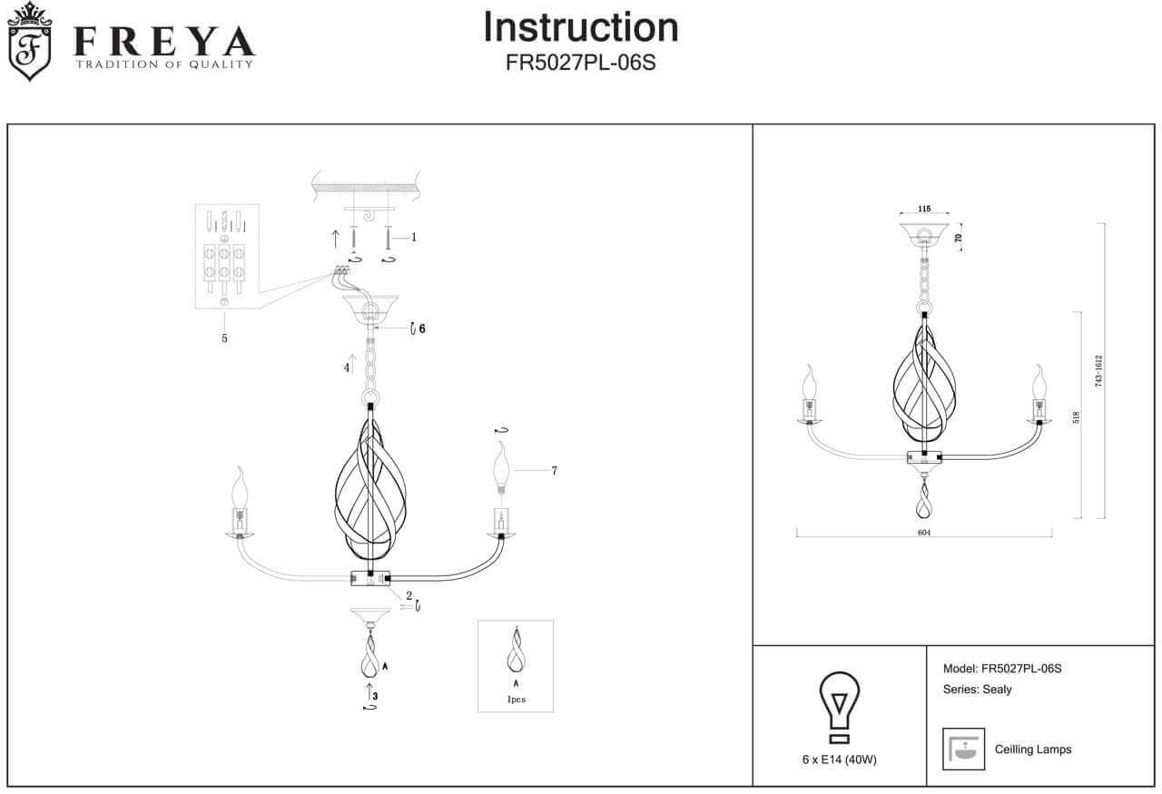 Подвесная люстра Freya Sealy FR5027PL-06S
