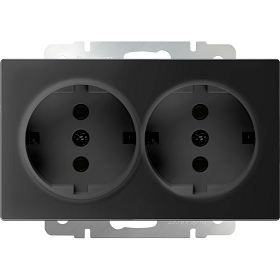 Розетка двойная с заземлением (черный матовый)