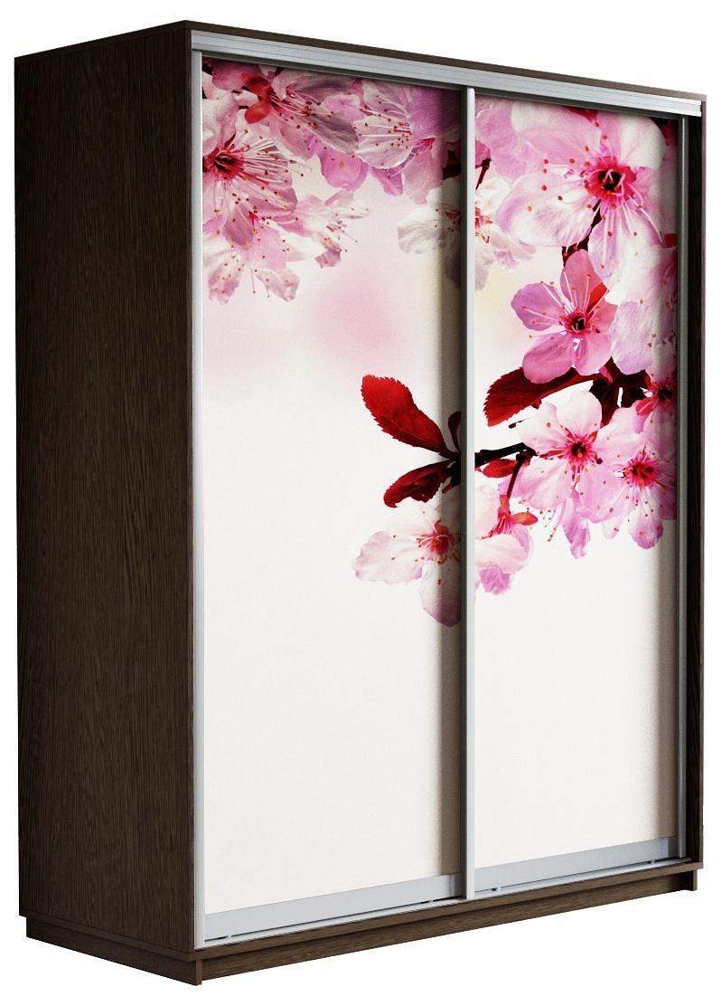 Шкафы-купе 2-х дверный Экспресс Фото дуо белый с цветным рисунком Сакура