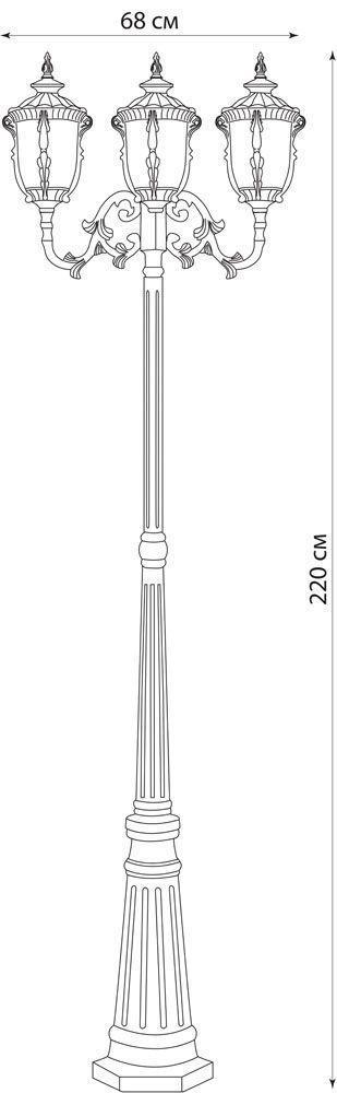 Светильник садово-парковый, серии «Шербур» (НТУ) FERON PL5009 1*60W, E27, 230V, IP44, цвет темно-коричневое золото, цилиндр, столб большой, 680*680*2200мм