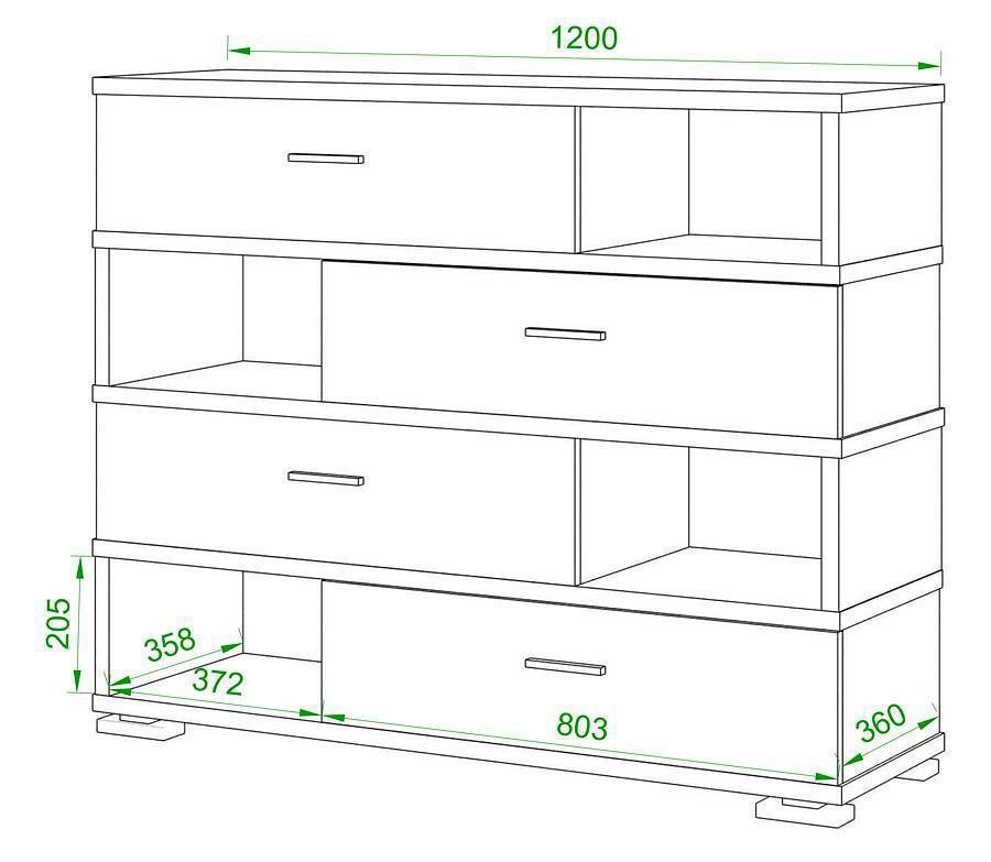 Компоненты, входящие в комплект 3 полки, 4 ящика