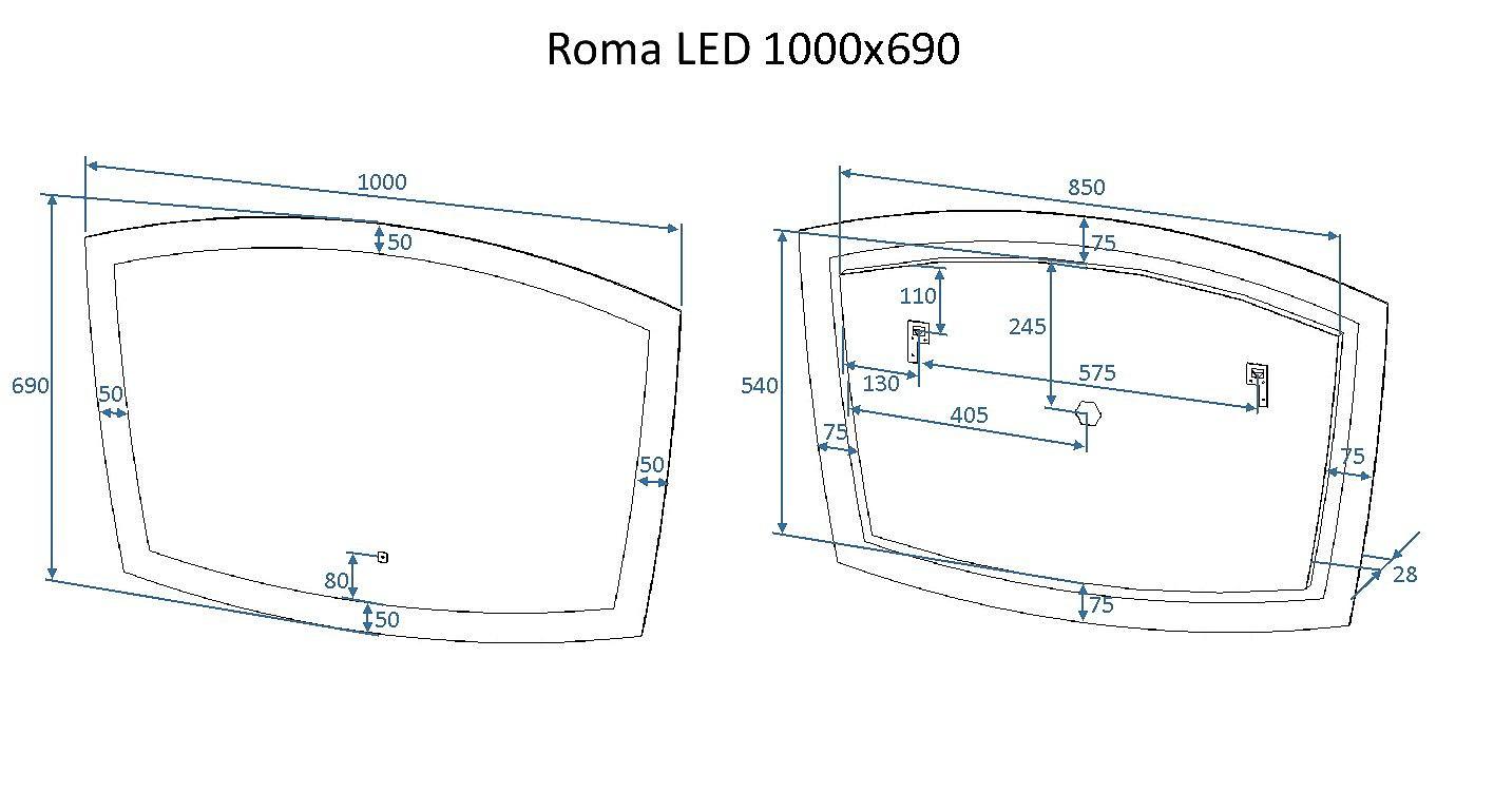 Зеркало настенное с подсветкой (100x70 см) Roma AM-Rom-1000-700-DS-F